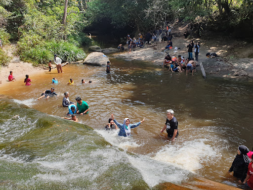 Late post. Nature water recreation. Wide rock water stream with white sand at corner. We cand slide on the rock to the pool of water down. Pool made by blocking the water stream with log of tree/wood. Just thinking to post this because it's holiday, although local goverment restrict visit due to...