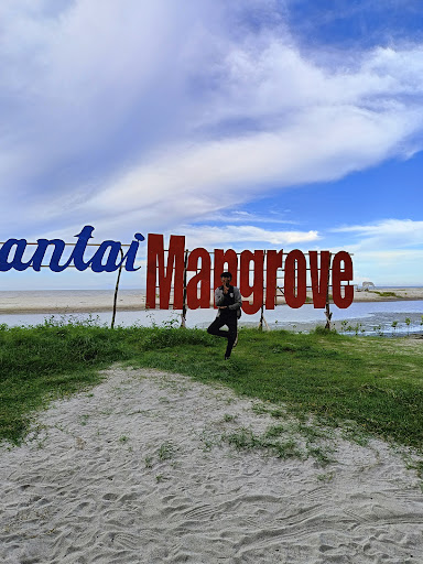 Read moreLewat jalan Pantai Kelang inilah kesana...benar benar adventure... Ada jalan beraspal Ada yang terkikis Karena pasang air laut sebelahan sungai nipah yang Airnya lancar mengalir.. Kapal tuk tuk nelayan.. Pulang pagi pergi malam cari...ikan.. Seru barisan kapal berbendera warna warni... Akhirnya bisa juga sampailah ke Wisata Pantai Mangrove... Tidak menyangka sampai tujuan. Kalau ikuti google maps dibilang sampai ditujuan putar balik.. Disini kita bingung.. Apa arti putar balik...ternyata kita sudah sampai. Seratus meter dari pin itulah pantai yang direklamasi dengan pohon mangrove..oleh pelajar.. SD Sd. SMA hingga mahasiswa yang dibimbing relawan. Jalan masuk..tanah. .tergenang air laut yang naik ketika pasang... Tidak apa masih bisa jalan.. Baru ketika Ada yang parah jalan berputar sedikit.. Tiket Dan parkiran bayar...pondokan juga... Spot2 selfie nyebrang pakai sampan.. Pantainya bersih.....