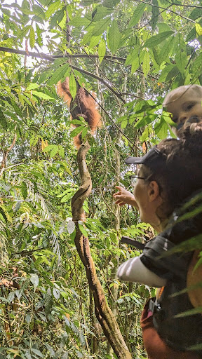Shoutout to Bendi and his team, including the guide Ronny, assistant/porter D, the cook Olek, and driver. I did the 2 day/1 night trek with my 2 kids (ages 7 and 9) and saw orangutans and the cutest baby orangutan, Thomas's leaf monkeys, gibbons, long-tail macaques, pig-tail macaques, a peacock, and a green pit viper!
