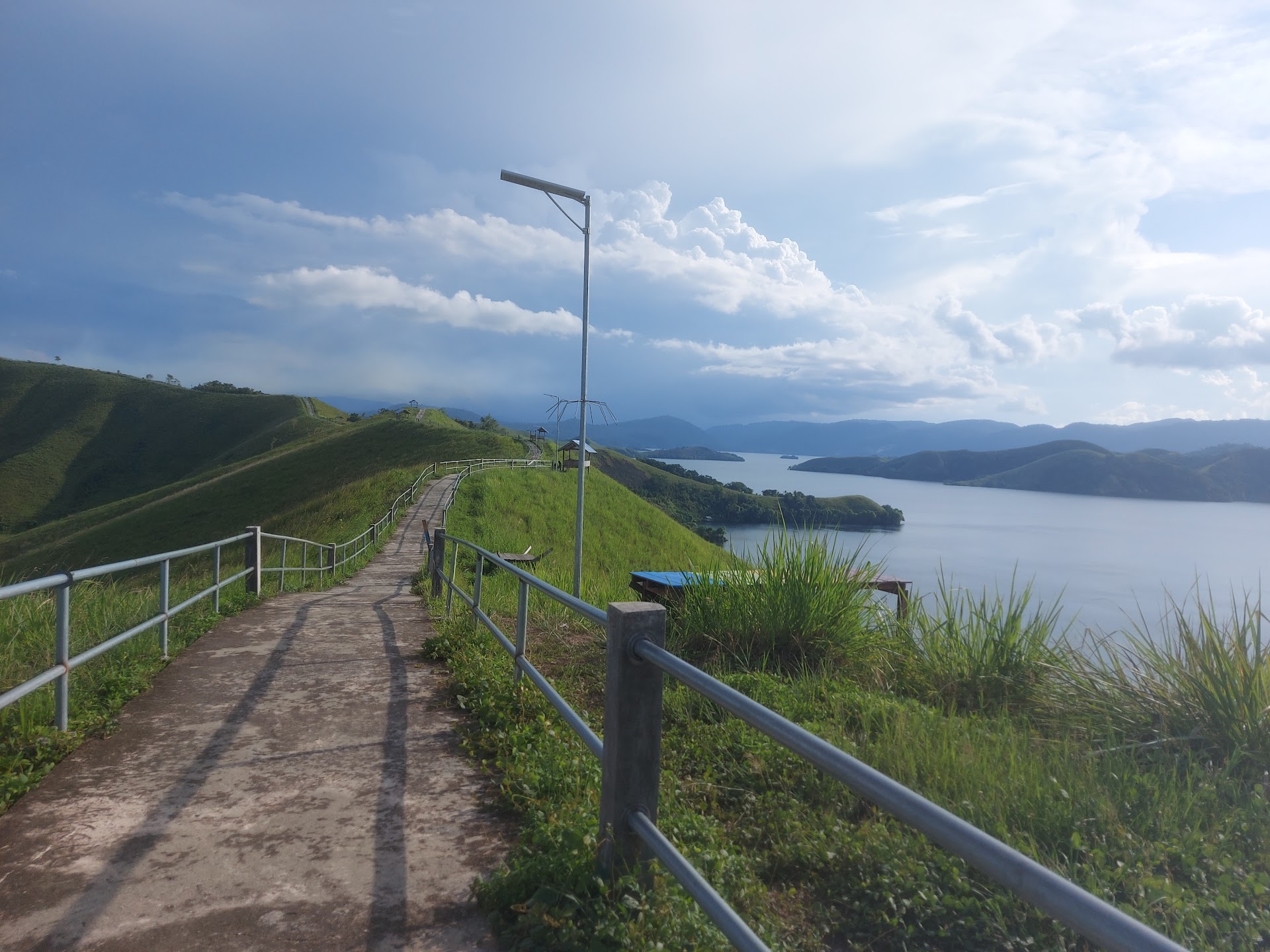 One of the hill's most remarkable features is the panoramic view it offers of Danau Sentani (Lake Sentani). From the summit, visitors can marvel at the expansive blue waters of the lake, dotted with numerous small islands, all set against the backdrop of the Cyclops Mountains. The scenery is particularly enchanting during sunrise and sunset, when the sky is painted with vibrant hues, enhancing the natural beauty of the area.