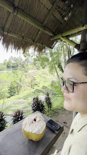 We came early morning when the place was still quiet, the small hut was still closed however you are free to walk around the area. Afterwards we waited in the sitting area just above the rice paddy. Moments later we were welcomed by Mrs. Made (the owner) together with her cute cat Cathy. She such a lovely person to converse with. She offered us some drinks for sale and we chose the fresh coconut.