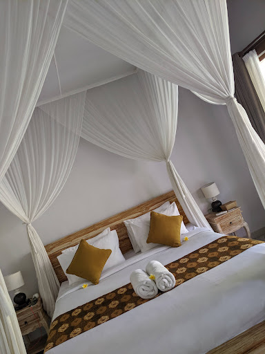 Ok, the least I can say is we were taken by surprise when we first arrived in the dark of night, because the place is in the middle of nowhere (not sooo close to ubud as it may seem, even our driver was confused). I feel like now, however, I can finally say it was a really pleasant experience. Waking up in the morning has never been easier, the nature around the place is really beautiful, there's a dog and a cat (we even saw a snake 💀), and the owners are super sweet (note that not everyone speaks English, so you'll have to ask for their daughter if you really need something). Also, they provided us with drinking water from a little outside reservoir. Finally, the rooms. They do have a subtle (or maybe more) odor which I suspect comes from what looks like a bit of mold (?? I don't know for sure, but it kinda looks like little white hair). Also, you might notice that the bedsheets are a little stained. Now, I don't know where to begin about the bathrooms. The one I stayed at didn't even have a door (the rest do) and one of us had spiders crawling in from the air vent every now and then (maybe a hole in the vent), but come on, it's bali, what did you expect. Anyways, my final verdict is, you should come here only if you are an adventurous person who doesn't really like the fuss of the town and has no issue dealing with a bit of nature (plus,...