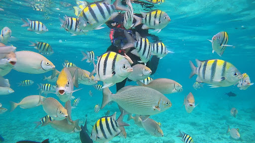 ย ย ย Read moreGorgeous beach with an abundance of gorgeous fish swimming around. The water is a brilliant blue colour. Even some decorations are submerged so you can take pictures with them.