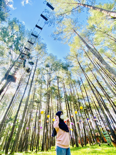 Read morePemandangan nya sangat indah dikelilingi pohon pinus, spot foto nya juga banyak, hanya saja saat datang kesini wahana seperti flying fox, sepeda gantung dan jembatan gantung tidak bisa kami mainkan krn petugas nya sedang tidak ada, fasilitas permainan seperti jembatan pink juga sdh rusak entah karena lapuk atau bgmn, smg ini bisa jadi perhatian pengurus wahana karena ide dan tempat nya sudah sangat bagus, dan bisa jadi tempat tujuan wisata buat yg sedang...
