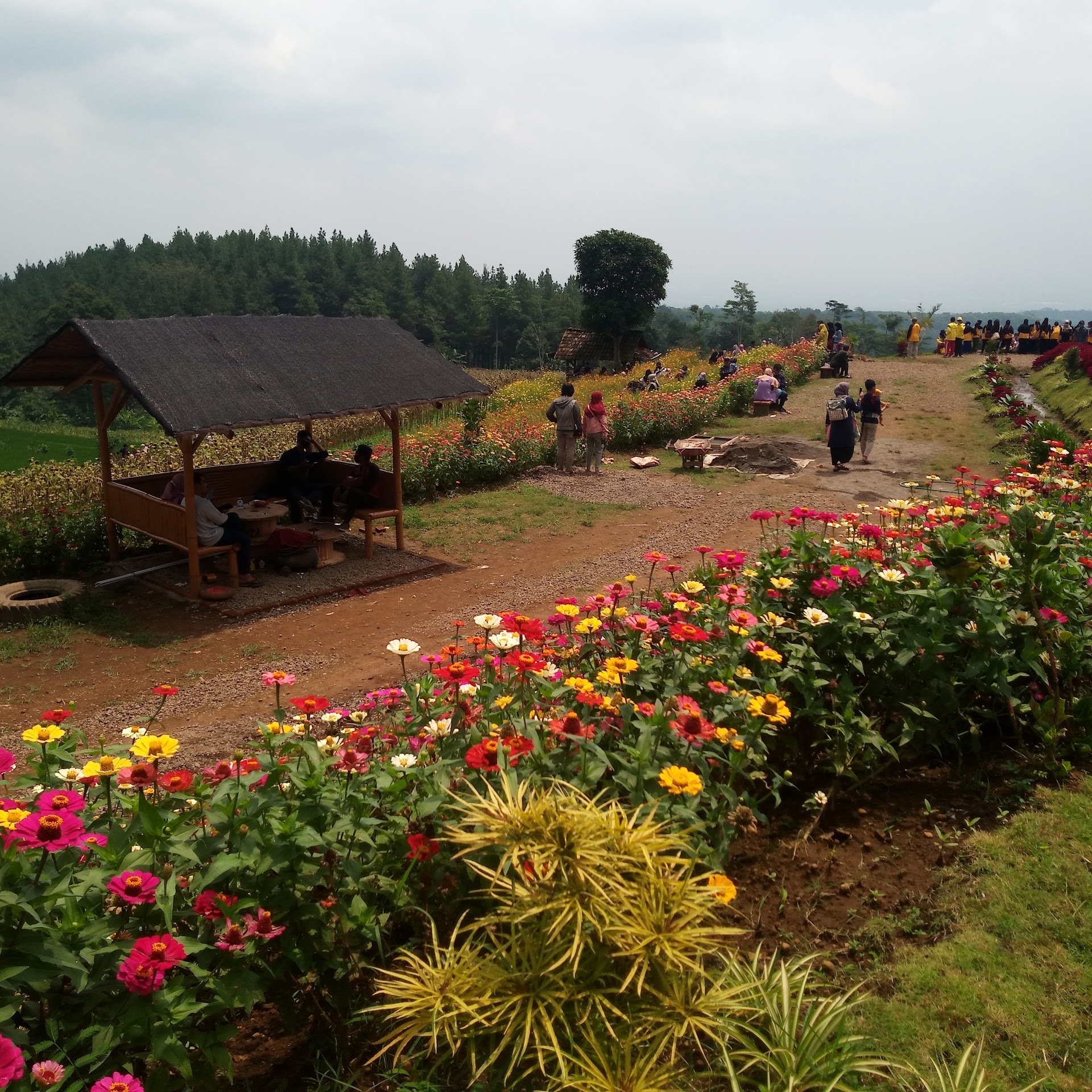 salah satu taman bunga yang berdominan bunga matahari di kawasan trawas. (+) htm murah yaitu Rp.5000 pemandangan cukup bagus parkiran luas terdapat beberapa wahana berbayar seperti berkuda, atv dll (tidak tahu htm nya ya karena waktu itu tidak naik, hanya ber swa foto saja dan makan di foodcourt nya) terdapat beberapa gazebo/gubug bambu terdapat foodcourt dengan harga yang terjangkau