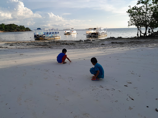 Kalau kesini, wajib naik perahu untuk berenang ke pasir putih nya, sekitar 5menit naik perahu dengan pemandangan lautan yang jernih, terumbu karang dan bintang laut. Kalau punya budget lebih, bisa mandi ke Pasir Timbul, sekitar 10 menit dari cottage. Bagi yang mau me time sendiri atau dengan pasangan, ini sangat sangat tepat, karena jauh dari kebisingan, hanya ada suara ombak kecil, angin dan keheningan. Walaupun tidak terlalu bagus untuk untuk berenang karena dipenuhi oleh terumbu karang yang sudah mati. Pasir timbul nya tidak besar, tapi cukup buat duduk-duduk dan menikmati pantai, apalagi bila cuaca sedang bagus, kamu bisa menikmati sunset dengan indah disini (sayangnya cuaca sedang kurang bagus pas kesini).