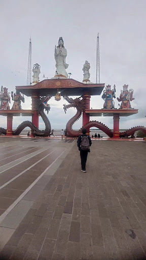 Sanggar Agung Temple, located along the scenic Kenjeran coastline in Surabaya, offers visitors a truly unique spiritual and cultural experience that blends Chinese tradition with Javanese coastal charm. From the moment you approach the complex, the majestic 18-meter-tall golden-white statue of Dewi Kwan Im (Goddess of Mercy) standing serenely on a lotus pedestal in an artificial lake commands attention, especially when illuminated at night against the backdrop of the Java Sea. The temple's seaside location creates a magical atmosphere where the rhythmic sounds of crashing waves mingle with the scent of burning incense and the soft chanting of devotees, transporting visitors to a realm of tranquility amidst the bustling city.