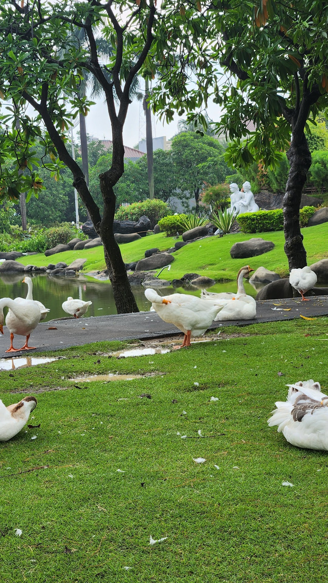 Read moreTaman kota yang bagus ala bangunan Roma, Italia gituh. Ada angsa di kolam sekitaran taman itu, maka dari itu namanya taman Angsa. Anak-anak suka sekali kalau pagi ketaman Angsa itu, meskipun jarak dari rumah ke taman angsa tidak dekat. Suasana enak kalau pagi atau sore hari. Tapi area parkir tidak tersedia jadinya parkir mobil atau motor di samping kanan kiri taman itu dengan sesekali dilihat karena tidak ada penjaga parkir disitu. Karna taman ini nerada satu kompleks dengan perumahan elite soo.... Bener-bener terawat dan bagus taman ini. Tidak ada penjual makanan atau minuman di sekitar taman ini. Jogging track. Kalau pagi hari minggu ramai orang berolah raga jalan pagi disini atau hanya untuk menikmati taman dan memberi makan angsa-angsa di taman Angsa ini. Happy travelling in...