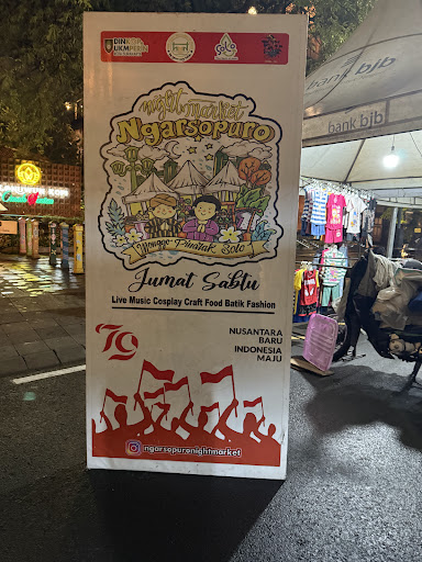 Read moreI think we were so lucky visiting this place. Actually we didn't have any plan to go to this place, but we'd felt super hungry and just parked our vehicle near some food carts there. Then we truly noticed that we were in night market. They sell many stuffs, from souvenirs to clothes. Do not hesitate to bargain. Come and have a dinner here, from traditional solo meals (nasi Liwet and soto) to a budget burger. We enjoyed having the dinner while watching a traditional Javanese dance performance. Do not need comfort elegant chair, just seat on floor mat.