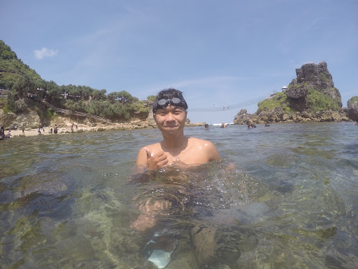 I visited Nglambor Beach twice. The first time was better. The weather was nice. I had snorkeling and swam there. We got there after camped at Siung Beach at the night before. The wave was good for swim and snorkel. But it was too crowded to find fish. And maybe we got late too. Fish always come in the morning, or in afternoon... We could rent the snorkel equipment for about 60k (i dont know these days price)