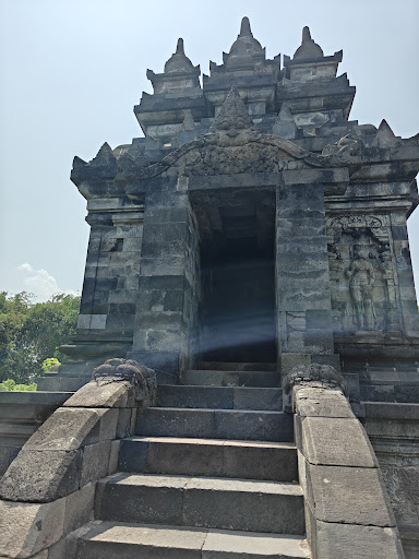 Design:The small temple stands on a square base and is noted for its relative simplicity, symmetry, and harmony, which has led historians to call it "the jewel of Javanese temple architecture." Reliefs and Carvings: The temple features exquisite stone carvings, including: Kala-Makara: Decorative carvings often found above entrances and on the sides of stairs in classic Javanese temples, serving a protective function. Bodhisattvas and Taras: Reliefs of male and female enlightened beings decorate the outer walls.