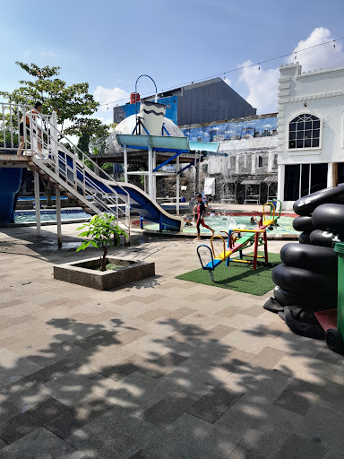 Read moreLetaknya cukup strategis di tengah kota. Hanya papan penunjuk masuk saja yang minim. Jalan masuk dan area parkir juga masih tanah berbatu, mungkin karena area waterpark ini masih dalam tahap pembangunan dan pengembangan luar dan dalam.