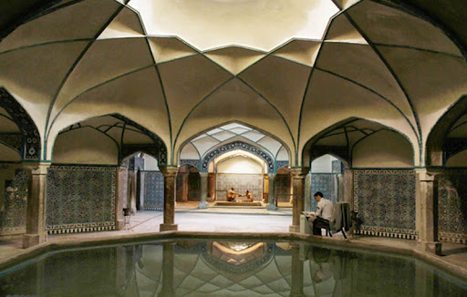 The entry portal of these baths has been decorated with beautiful paintings of Safavid era. The bath is 64m in length and 30m in width at an area about 1380 sq.m. The long of its hot-chamber (Garmkhane) is 6/25m in width is 7/5 m and its reservoir is 8/5 m in length and 5/7 in width at an area of 44/8sq.m. It consists of two main parts; hot-chamber and dressing room. According to the class divition in Safavid era the dressing room of bath has 6 chambers which each of them devoted to a special social class, including “Sayeds, clregies, tribal chiefs, gradness, merchants and rustics. However, today they are one are two statues in every chamber of dressing room that demonstrate the feature of mentioned classes.