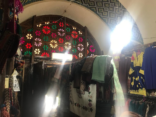 اما بیاید از معماری بگذریم و وارد حال و هوای خرید بشیم. بازار وکیل پر از حجرههایی با اجناس متنوعه. اینجا میتونی همهچیز پیدا کنی: از فرشهای دستبافت که انگار هر کدومشون یه اثر هنریه، تا ادویههای معطر که بوی زعفرون و دارچینش توی هوا میپیچه. یه گوشه، فروشندهای داره پارچههای سنتی مثل ترمه و مخمل نشون میده، و یه جای دیگه، یه مغازه پر از ظروف مسی و قلمزنیه که برقشون زیر نور چراغها چشمنوازه.