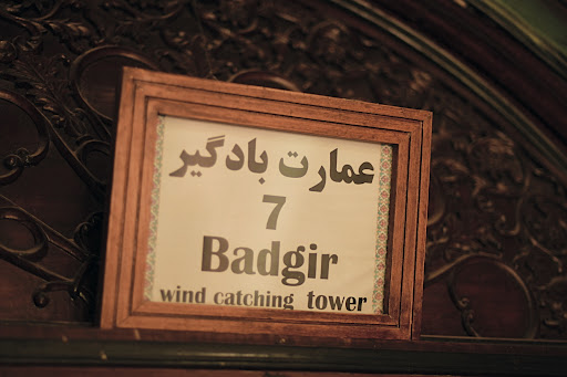The mansion is named after its tall windcatchers (badgirs). It was fully restored under Naser al-Din Shah, who redesigned it with a cruciform main hall layout, adorned with large orosi (stained-glass sash windows), mirrorwork, and stucco decorations.