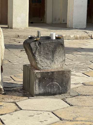 The Imam (peace be upon him) said: Here (on the white rock) Mary (peace be upon her) gave birth to Prophet Christ (peace be upon him). The tradition says that after the water began gushing out of the rock with the miracle of Al-Imam Ali (peace be upon him), and his companions did ablution and drank the water, the Imam hinted at a near place and said to his companions: dig it, there are seven hands …, when they dug that place they discovered a white stone. The Imam (peace be upon him) then said: Here (on the white rock) Mary (peace be upon her) gave birth to Prophet Christ (peace...