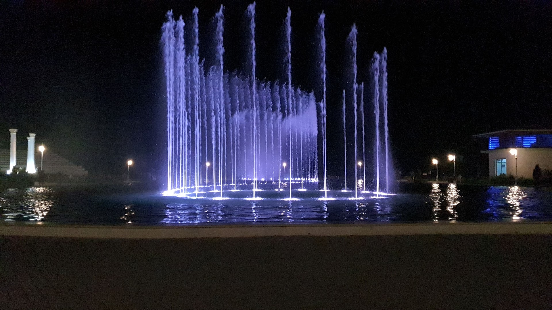 The landscaping is beautifully done, with plenty of interesting features for kids. The work seems to be ongoing, and they’re doing a great job. There’s also a water and light display set to music, which was very impressive!