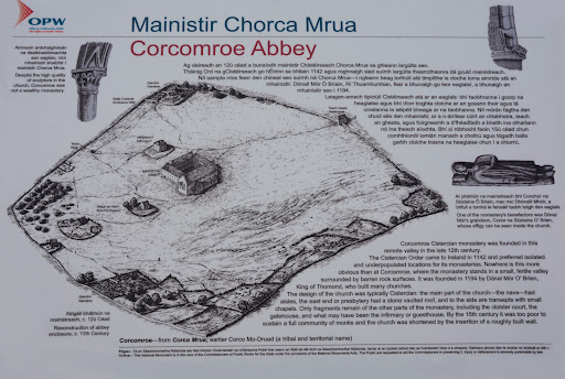 The Cistercian Order came to Ireland in 1142 and preferred isolated and underpopulated locations for its monasteries . Nowhere is this more obvious than at Corcomroe, where the monastery stands in a small, fertile valley surrounded by barren rock surfaces. It was founded in 1194 by DĂłnal MĂłr O' Brien, King of Thomond, who built many churches.