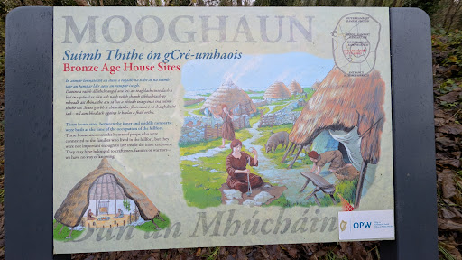 Mała wycieczka po okolicy Newmarket-on-Fergus w hrabstwie Clare , niespodziewanie zaowocowała ekscytującą wyprawą o tematyce archeologicznej . Stało się to za sprawą wzgórza , dziś porośniętego gęstym lasem ale w epoce brązu otoczonego trzema pierścieniami obronnymi , które w 950 roku p.n.e. stanowiły centrum życia i schronienie dla ówczesnych mieszkańców . MOOGHAUN HILLFORT , to jeden z największych prehistorycznych fortów w dzisiejszej Irlandii . Zbudowana ze skał wapiennych monumentalna struktura , jest trudno widoczna z poziomu gruntu , jednak posiadacze dronów mogą bez problemu podziwiać jej wielkość . Ja musiałem zadowolić się wizualizacją umieszczoną na jednej z wielu tablic informacyjnych . W obrębie fortu znajdują się również zbudowane z wapiennych kręgów , tzw. Cashels , pochodzące z 500 roku n.e. Wielokrotnie prowadzono tutaj profesjonalne prace wykopaliskowe skutkujące odnalezieniem wielu artefaktów , lecz najbardziej spektakularne odkrycie miało miejsce ok. 1 km na północ od fortu . W 1854 roku robotnicy pracujący przy budowie linii kolejowej natrafili na skarb . Ogromna ilość przedmiotów ze złota , z których większość do dziś możemy podziwiać w National Museum of Ireland przetrwała w doskonałym stanie , niestety część tego największego w zachodniej Europie skarbu została przetopiona i przepadła bezpowrotnie. Oprócz materialnego skarbu , okolica Fortu Mooghaun jest bogata w walory krajobrazowe . Nie brakuje tu leśnych gąszczy , łagodnych pagórków , łąk oraz zamku i urwisk skalnych . Wabieni nadzieją odnalezienia kolejnego złotego skarbu , lub po prostu chęcią ciekawie spędzonego czasu pośród natury i historii , koniecznie powinniśmy odwiedzić...