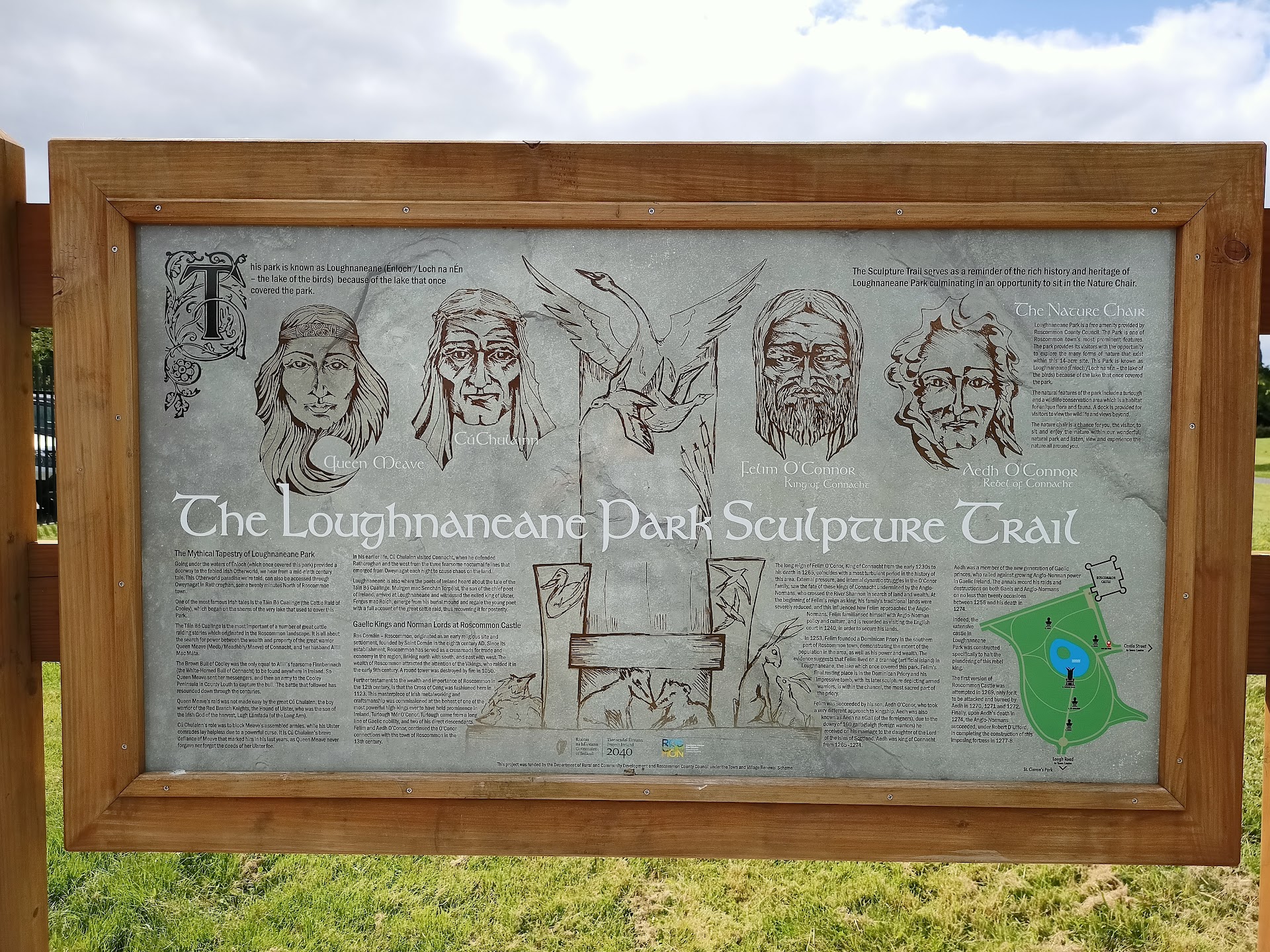 Just off the Roscommon Town's Main Square this park is an excellent addition to the town. The park is over looked by Roscommon Castle which is accessible during opening hours of the park. There are information boards dotted throughout the park detailing the various types of birds and wildlife that can be seen inhabiting the park at various times of the year. It is popular with walkers and kids who come to feed the ducks in the pond! Near the town side of the park is located the outdoor gym which has various equipment all free for the...