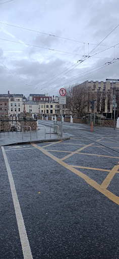 Crossing the River Liffey, the Seán Heuston bridge stands between Heuston Station and Phoenix Park. It was originally built in 1828 and today is used for pedestrians and Luas traffic - cars and trucks are shifted to the downstream Frank Sherman Bridge.