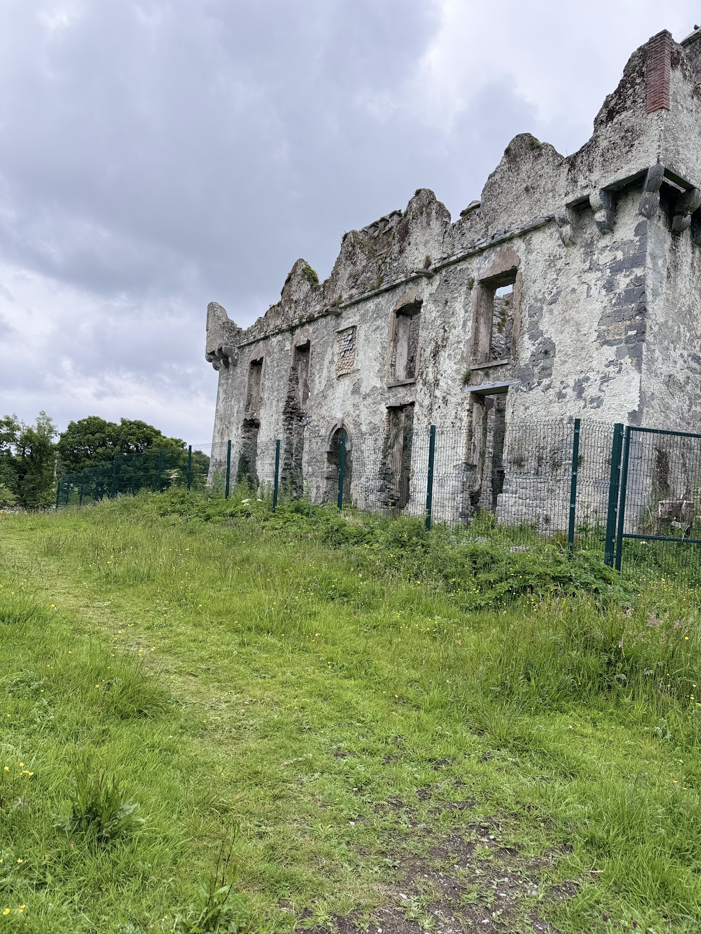 The castle was built on the site of a mid-16th-century tower, first recorded in 1569. It was occupied by Thomas Colman in 1574 and sold to the Blake family in 1598. • Blake Family: The Blakes, of Anglo-Norman descent, settled in Galway in the 13th century and became one of the wealthiest families in the region, owning lands in the counties of Galway, Mayo and Clare. They expanded the castle, adding a Jacobean mansion in the late 17th century, giving it a grand appearance. The Blakes were renowned for their hospitality, hosting the annual Maying in Menlo, a spring festival of music, dancing and feasting to which locals were invited. • The 1910 Disaster: On 26 July 1910, the castle was destroyed by a massive fire, considered one of the worst to hit western Ireland in 50 years. A fire, believed to have started in the room of Eleanor Blake, the daughter of Sir Valentine and Lady Blake, claimed the lives of Eleanor, who was an invalid, and two maids. Eleanor's body was never found, adding to the mystery of the tragedy. After the fire, only the ivy-covered walls remained of the castle. Sir Valentine and Lady Blake, who were in Dublin at the time, moved to England and never returned to Menlo. Current state • Ruins: Today, Menlo Castle is an ivy-covered wall that blends harmoniously with the natural landscape, creating a picturesque and slightly mystical appearance. It is a popular local attraction, located opposite the campus of the University of...