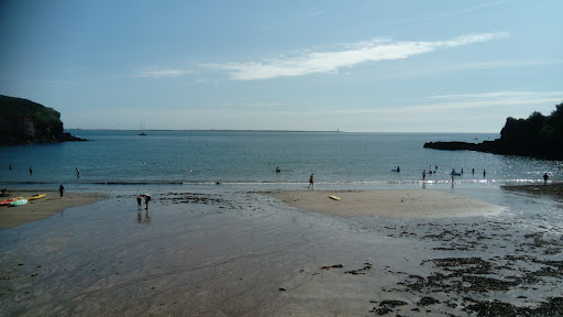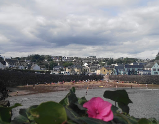 Lovely small cove... On a sunny day draws a pleasant mixed group of swimmers plus kids making sand castles and pools. Very nice pub "The Strand" overlooking the cove serving nice grub at reasonable prices. Great to have staff that don't hassle you to move on once you have finished your food. A very nice time spent with family, with the extra joy of people watching...