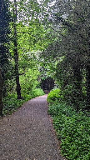 I walk here with my grandchildren. Its lovely. It skirts a soccer grounds and has outdoor excersize equipment dotted around. It also has a little Fairy Village which is nice, unfortunately there is a rememberence plaque to a suicide person, in the fairy village which will need to be explained to inquisitive children. Its well worth a visit. Lots of people walk dogs there. (SCOOP THE...