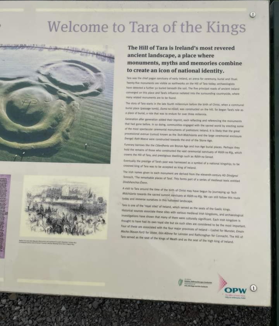 Tara is traditionally known as the seat of the High Kings of Ireland. It's said that many kings reigned there.