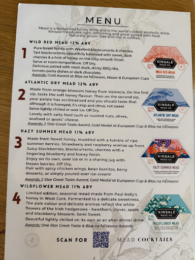 Read moreMy husband and I were on vacation and decided to spend a day in Kinsale. I was particularly interested in doing a mead tasting, as I had heard good things about it. The facility isn’t located in the downtown area where the bus drops you off—it's a short walk, but for me, it ended up not being worth it based on how we were treated.