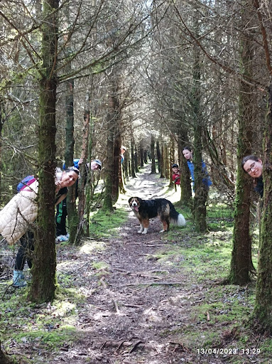 We visited the sculpture park on the Saturday afternoon and took a leisurely stroll around the fairy walk in the woods (fantastic for children of all ages ) got some fantastic photos at the Celtic knot , learned about the various dry stone wall types from the different provinces at the gathering of stones and climbed to the top of the boora pyramid .