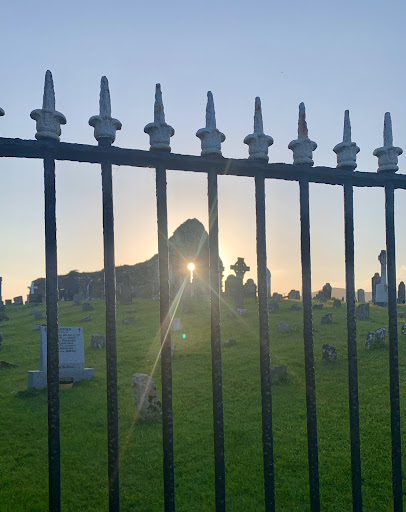 Read moreSurrounded by fields with a clear view of the distant mountains, this old but still well tended graveyard with church ruin has all the signs of a place of peaceful slumber - long may out last. I suspect the name is a direct translation of...