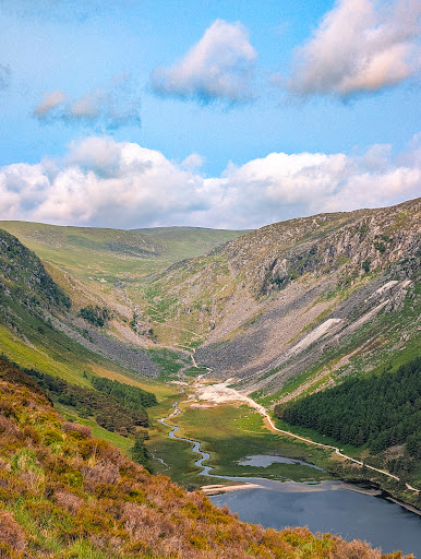 Beautiful, well-maintained trail with varying changes in terrain and scenery as you progress along. Doing the loop counterclockwise makes the most sense. You can warmup on the flat terrain beside the gorgeous upper lake, then tackle the stone climb to elevation going uphill, which I think is safer as some of the stones may be slippery. The uphill will take you along the stream and waterfalls that feed into the upper lake. Along the ridge line of the lake there are wooden boardwalks so there is less stepping up and a more gradual elevation change. This was definitely one of the highlights of our Ireland trip. I envy the locals who can do this on a regular basis, what a...