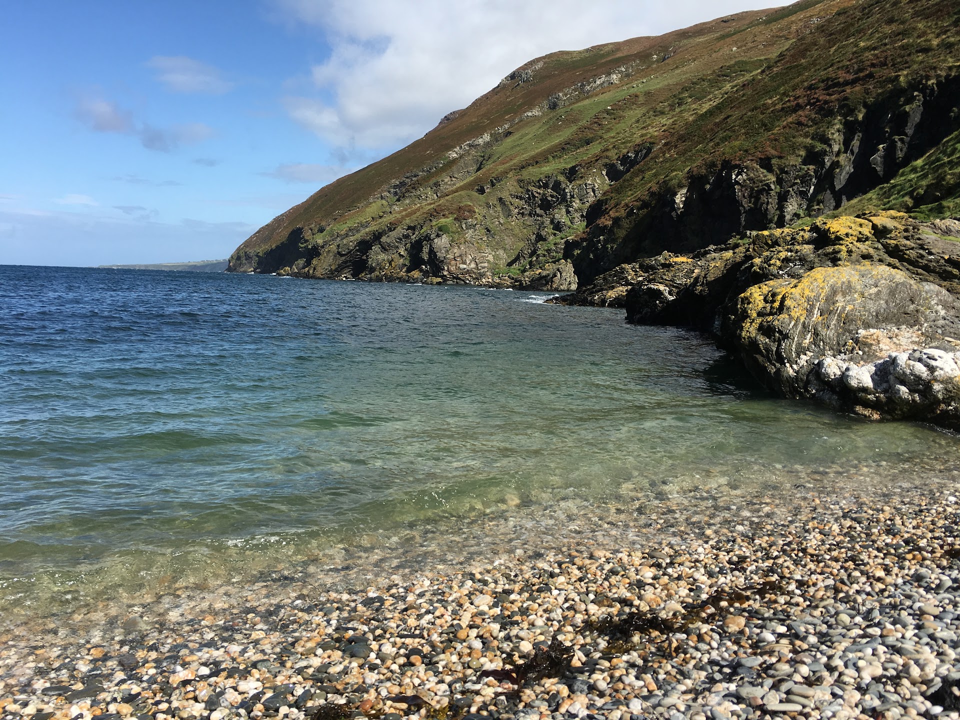 Read moreOn a clear day this is a gem of a place. Admittedly not easy to reach. There is a single track road to it. It is a stoney beach in a shallow horseshoe bay. Ideal for paddling or just scrabbling on the rocks. There are a couple of benches for a picnic or just to sit and watch the waves gently lap the shore. Interesting sea birds to view. Great scenery looking up the coast towards Peel. A perfect spot to pause whilst walking on the coastal path although the path is really really really steep either side of the bay and is not for the faint hearted or those not good...