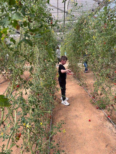 Great fun with and for the kids. A variety of cherry tomatoes, sweet and juicy. Lots of gravel and trucks etc. for kids to play with, bubbles, mini zoo of goats, chickens and geese. Passion fruit maze. Passion fruit season starts from January. They have a small kiosk of jachnun, lollies and a vending machine, as well as tea and coffee. Lots of seating. Just need a separate area...