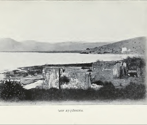 "ושם ליד הים שדה עשב ובו חציר רב ועצי תמר רבים, ולידם שבעה המעיינות השופעים כל אחד ואחד מים לרוב. בשדה הזה השביע האדון את העם בחמישה ככרות לחם ובשני דגים. ואכן מן האבן שעליה הניח האדון את הלחם נעשה עתה מזבח, ומן האבן נוטלים הבאים שבבים לרפואה, ומועילה היא לרבים. ליד קירות הכנסייה עוברת הדרך הציבורית, ושם היה למתי השליח בית מכס."[1]