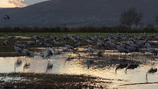 I was actually there twice already and the best time of the day to visit the Hula Nature Reserve is before sunset. this is when the cranes and many other birds get back by the thousands to the Hula lake to sleep over through the night, while during day time they will roam the grasslands and the fields around the valley.