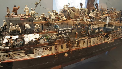 Музей истории нелегальной иммиграции в Эрец-Исраэль, музей под открытым небом. Рядом транспортная развязка, шуршат шинами машины, фуникулёр поднимает пассажиров на вершину горы Кармель. А ты проходишь на территорию музея – и время поворачивает вспять. Вы читали роман «Исход» Леона Юриса? Он принёс автору всемирную известность. В романе описаны исторические события, охватывающие почти сотню лет: от еврейских погромов на территории Российской империи в конце XIX века до создания государства Израиль в середине ХХ века. Возвращение на историческую родину и борьба за создание собственного государства на фоне истории любви, как и положено большому роману. Да, это художественное произведение, не стоит относиться к нему, как к документальному полотну. Но роман позволяет нам на своих страницах увидеть, прочувствовать, задуматься над тем, что пришлось пережить евреям в борьбе за собственное государство. Тираж романа превысил 7 миллионов экземпляров, он был переведён на 50 языков и экранизирован. Точно так же - «Исход», или «Эксодус» в английской транскрипции, «Исход-1947», назывался один из кораблей, которые доставляли еврейских беженцев в Палестину, находившуюся тогда под британским мандатом. Так вот музей – и об этих рейсах тоже. О том, кто, как и в каких условиях, преодолевая немыслимые трудности, помогал евреям попасть домой. Многие, очень многие погибли в пути. Кого-то вылавливали из воды у самого берега вожделенной земли и … вывозили в лагеря на Кипр. Люди, чудом уцелевшие в концлагерях, опять оказывались за колючей проволокой и ожидали решения своей судьбы. Кто принимал за них эти решения? Почему они оказались лишены возможности самостоятельно решать свою судьбу? Вопросы риторические, наверное. Музей рассказывает о времени борьбы за иммиграцию в Эрец-Исраэль в период с 1934 по 1948 годы. Это одна из важных вех в создании государства Израиль. Организованная иммиграция началась в 1934 году. В это время в Германии к власти пришли нацисты, в Европе был заметен рост антисемитских явлений. Правила британского мандата не допускали свободного въезда евреев в Эрец-Исраэль, потому и возникает нелегальная иммиграция. Уже до начала Второй мировой войны сюда прибыло около пятидесяти судов нелегальных иммигрантов. На стендах показаны, из каких стран сколько рейсов были сделаны. Новая волна нелегальной иммиграции начался с окончанием Второй мировой войны в мае 1945 года. Миру стали известны масштабы зверств, имевших место в Европе, и многие евреи, выжившие после Холокоста, стремились иммигрировать в Израиль. Музей бережно хранит малейшие свидетельства эпохи. Воссоздаёт атмосферу, царившую на кораблях. Кроме привычных стендов, макетов и подлинных предметов того времени, в музее есть даже карикатуры. Согласитесь, суметь с юмором взглянуть на происходящее дано не каждому. Особое внимание мы обратили на несколько фильмов с документальными кадрами. Это бесценные свидетельства. История нелегальной иммиграции и история создания военно-морского флота Израиля тесно переплетаются. Корабли, перевозившие нелегальных иммигрантов, были первыми военными кораблями военно-морского флота. Военно-морской флот Израиля, зародившийся в те годы, сегодня является одним из самых передовых военно-морских сил в мире. Музей принадлежит Министерству обороны и экскурсии 