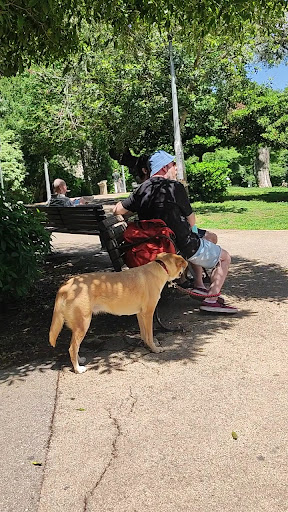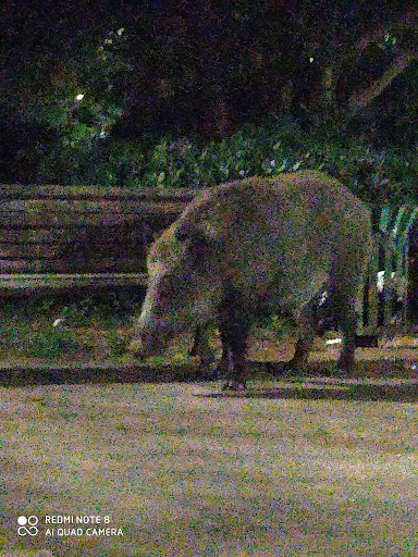 Pleasant, shady park with sitting benches, lawn, fountain for soothing background white noise. Usually a couple musicians providing additional ambiance. Visited by some docile wild boars in the past season. They don't bother you if you don't...