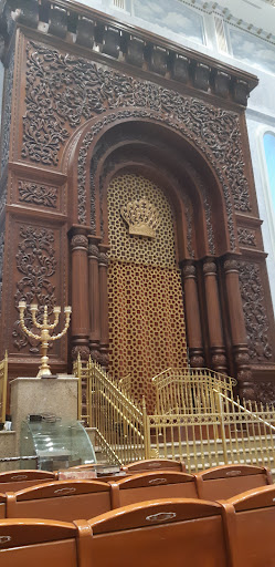 ארון הקודש: גובהו 12 מטר, רוחבו 8 מטר, משקלו 23 טון, עשוי מעץ מיובא מברזיל.יכול להכיל 70 ספרי תורה... שוכבים אם זה היה ספרדי אולי חצי מהכמות היה נכנס אבל מדובר בארון ענק.