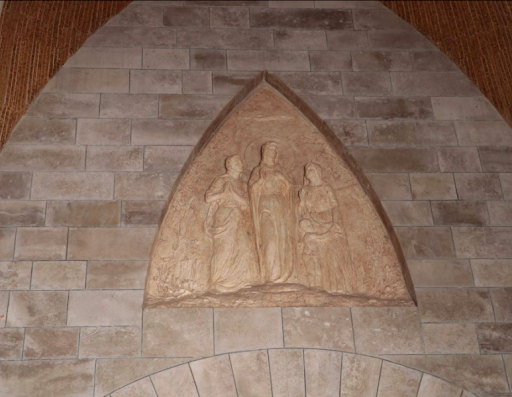 The mosaic on the altar has an illustration of a hen gathering her chickens, which is based on Luke 13,44:
