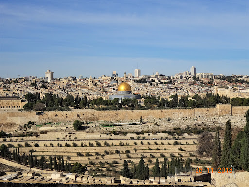 From outside the church, there are additional resting places with outstanding views of the Old City from this vantage point upon the Mount of Olives.