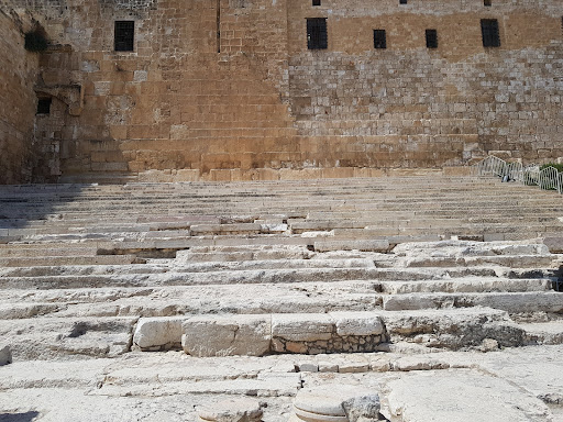 Read more예루살렘 성전 남쪽 성벽의 계단이다. 2천년전 예수님 시대 계단의 돌이 아직도 그대로 남아 있다. 그 당시 사람들은 이 계단으로 올라가서 훌다 문을 통해 성전으로 들어갔다. 오늘 우리도 그 당시 계단을 밟아볼 수 있다. 계단 앞에는 성전에 들어가기 전에 몸을 정결하게 하기 위한 많은 결례소들(Mikveh)이 있다.