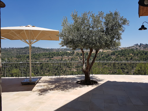 From the tour of the basement, we happily moved to wooden small tables in the well-kept and shady visitors' plaza, overlooking an open view of the Judean Mountains and the nearby settlements.