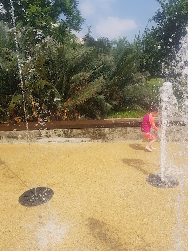 Clean and modern park with separate play structures for older and younger children, large grassy areas and sprinklers for children on warmer days (check hours for sprinklers, as I've heard that it varies). There is a parking lot next to the park, as well as several shops and eateries, many of which are open...