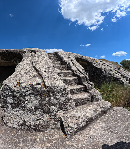 Read moreBellissimo sito, posto appena fuori l'abitato di Ittiri, in agro. Il complesso di domus più famoso, quello con le scalinate, è molto suggestivo, e in passato utilizzato forse come abitazione (caminetto), forse come ricovero bestiame. Sullo stipite di una delle porte che collega due camere è incisa anche una croce cristiana, chissà magari gli utilizzatori erano molto fedeli. Dal complesso con le scale, si nota in lontananza, oltre il campo incolto e una strada sterrata, un altro complesso di grotticcelle, anche di notevoli dimensioni, ma al momento della mia visita (inizio maggio 2024), l'erba alta, le ortiche e i pollini rendevano molto ostico l'attraversamento del campo. Viste le pressochè inutili indicazioni di Google maps (non seguitele!), noi abbiamo potuto raggiungere, arrangiandoci molto, solo questo complesso, ma leggendo altre recensioni, è presente una via più agevole, seppur non di molto, da cui si possono visitare tutti i nuclei che compongono questa necropoli, che anche se separati, fanno parte dello stesso complesso. Assolutamente non segnalato da cartellonistica; sito non gestito, visita...