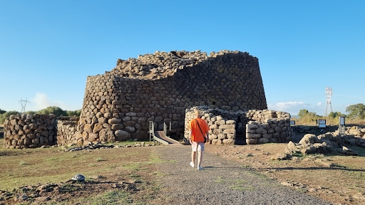Betritt man den Nuraghe durch den Haupteingang ist man zuerst von der mystischen Beleuchtung und den riesigen verwendeten Steinen beeindruckt. Wie haben es die Menschen vor 3500 Jahren geschafft, diese gewaltigen Steine so aufeinander zu schichten, ohne Verwendung von Mörtel (!), dass Kuppeln und spiralförmige Treppen entstanden?! Unmittelbar hinter dem Eingang sind 3 Korridore, die zu 3 kuppelförmigen Räumen führen. Der innere große Raum hat 3 kreuzförmig angeordnete Nischen. Eine Treppe, oder eigentlich nur ein Gang, führt spiralförmig zu einer oberen Etage und zu einer Terrasse, die einen schönen Rundumblick über die Landschaft im Abendlicht gewährt. In den Abendstunden findet heute an der Außenmauer eines der Türme ein Meditationsevent statt. Die Leute liegen auf Matten im Gras und lauschen den sanften Klängen eines Percussionisten, während die Sonne allmählich untergeht und ein wunderschönes Abendlicht auf die Anlage wirft.