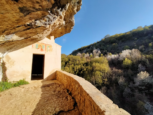 Read moreLuogo meraviglioso, immerso nella natura più selvaggia. Abbiamo costeggiato un dirupo. NB: appena arrivati c'era un parcheggio sulla destra a pagamento (€3) poi proseguendo a piedi abbiamo scoperto apochi metri più avanti un parcheggio libero 😏. C'era pure una casetta con un giovane, pensavo dovessi pagare un biglietto e invece no: parcheggio libero e ingresso libero. Era un punto informazioni. Però, secondo me, una maggiore vigilanza ci vorrebbe perché il percorso non è proprio semplice e dovrebbero dare informazioni dettagliate, assicurarsi dello stato di salute delle persone, assicurarsi che non soffrano di vertigini, tenere il conto di quante persone si avviano all'eremo e quante ne tornano (per esempio lasciando il documento da ritirare poi al ritorno). Il percorso, lungo poco più di un chilometro, è inizialmente sicuro e tranquillo in un boschetto, poi arriva una discesa sterrata con sassi che sporgono dal terreno e ti aiutano come fossero gradini. Poi si giunge su una stradina stretta con pendio a sinistra e dirupo a destra (per me bellissimo ma potrei comprendere chi soffre di vertigini). A metà strada ci ha beccati un diluvio per cui tutto era più scivoloso e pericoloso ecco perché mi son chiesta come mai non ci sono controlli. E se qualcuno scivola e si fa male o peggio, chi se ne accorge? Ho visto un signore con gli infradito 😱. Al nostro ritorno abbiamo trovato la casetta di legno del punto informazioni chiusa, cioè con la pioggia hanno chiuso e sono andati via. Beh, non mi è sembrato molto rasdicurante. Il comune dovrebbe mettere del personale, far pagare un biglietto minimo, trattenere i documenti delle persone che si avviano, dare indicazioni e raccomandazioni, controllare...