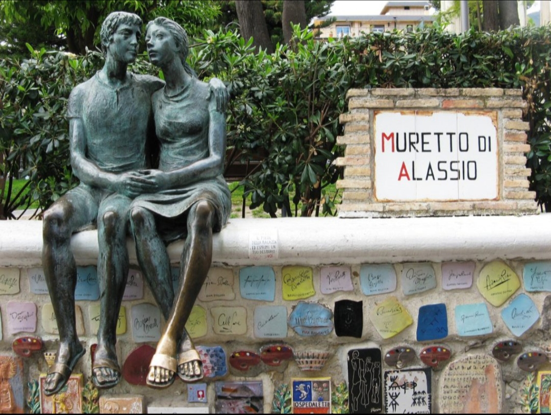 Read moreIl coloratissimo e suggestivo Muretto è un’installazione d’arte il quale ha catturato il mio sguardo al mio passaggio riempiendo di pura fascinazione i miei occhi verdi, nell'immediato, dall'istante in cui soffermandomi ho desiderato cogliere i preziosi dettagli. L' installazione consiste in un muro sul quale nel corso del tempo sono state apposte numerose piastrelle in ceramica, variamente decorate, recanti le firme di personaggi celebri. Pochi conoscono la storia, l’ideazione del noto muretto si deve a un personaggio storico straniero di prima grandezza, lo scrittore americano Ernest Hemingway. L'autore di "Addio alle Armi". Lo scrittore, amante dell’Italia, durante un suo soggiorno nel bellissimo borgo ligure, ebbe questa intuizione : abbellire e decorare una rustica parete di pietre sconnesse nel 1953, per me osservare l'autografo dello scrittore statunitense Ernest Hemingway assume per la mia cultura un valore inestimabile, vi sono anche numerose piastrelle con stemmi di Comuni, associazioni e circoli, di personaggi di fantasia come Hansel e Gretel. Fu poi aggiunta la statua bronzea degli Innamorati sopra il muretto, opera dello scultore Eros Pellini a seguito di questo avvenimento il muretto ha assunto anche il significato del "Muro degli Innamorati" dove tutte le persone che provano dei sentimenti lasciano un pensiero, un nome, o un lucchetto simbolo lascito di un cuore che batte. La leggenda narra che Adelasia, si innamorò di uno scudiero di corte di nome Aleramo. Non potendosi unire ufficialmente in matrimonio, visto i diversi ranghi sociali, i due scapparono insieme, nascondendosi e stabilendosi sulle colline liguri di antico nome, Alaxio o Alascio, ancora presenti sopra la cittadina. I due diedero origine alla stirpe e allo sviluppo della sottostante città di Alassio. Lo stemma comunale di Alassio è raffigurata una torre con Adelasia sopra di essa, per ricordare l’antica e nobile origine. Oggi le piastrelle in ceramica sul Muretto di Alassio sono più di 1000 costituendo un’opera unica al mondo. Uno spettacolo colorato e di rara bellezza artistica, rappresentante anche parte della storia italiana dello spettacolo e della società.