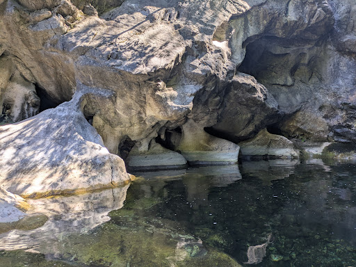 Beautiful hike along the stream, recommended. WARNING: bridges are in bad shape and look very precarious. Unfortunately this path is not well marked so a couple of times you need to read forest tracks crossing the stream. But the arrival of the grotto and the waterfall it's worth the hike. There is a lot of forest life, fish and dragonflies etc... The grotto is magical, the water pure, and the rocks molded by time it make an outstanding...